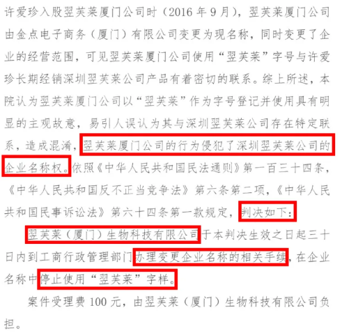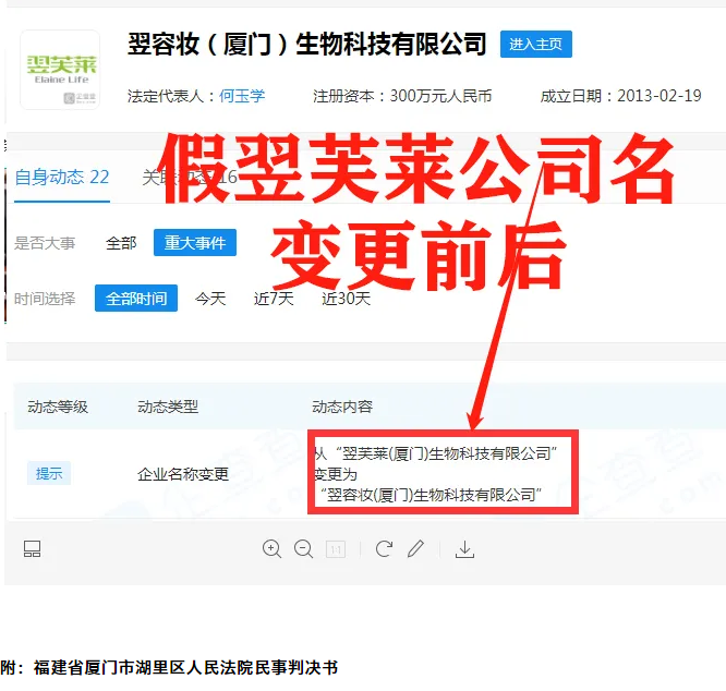 假冒“翌芙萊”公司經(jīng)法院終審判決,依法修改公司名稱,禁止使用“翌芙萊”字樣。