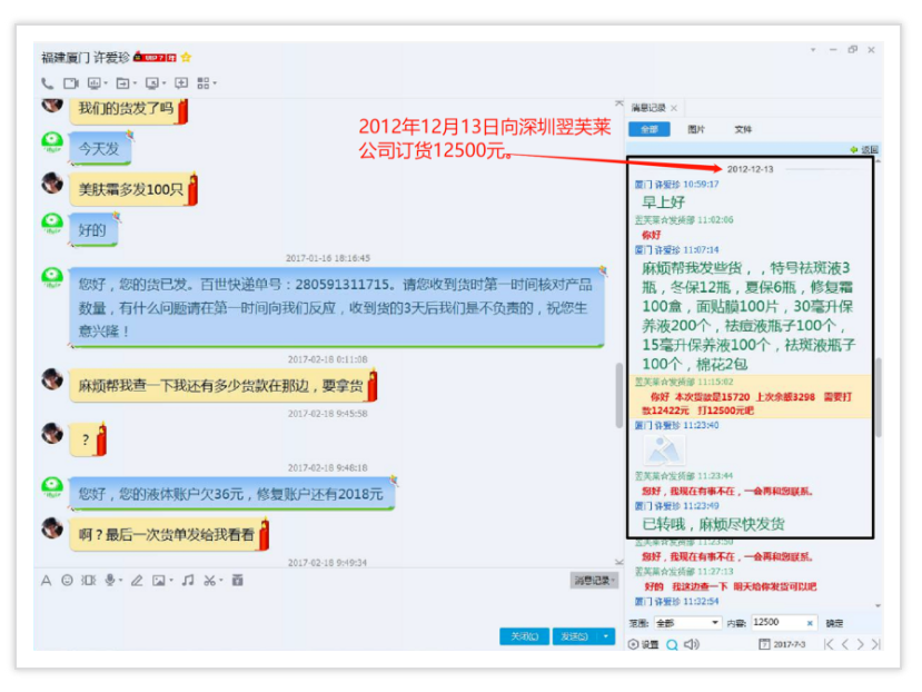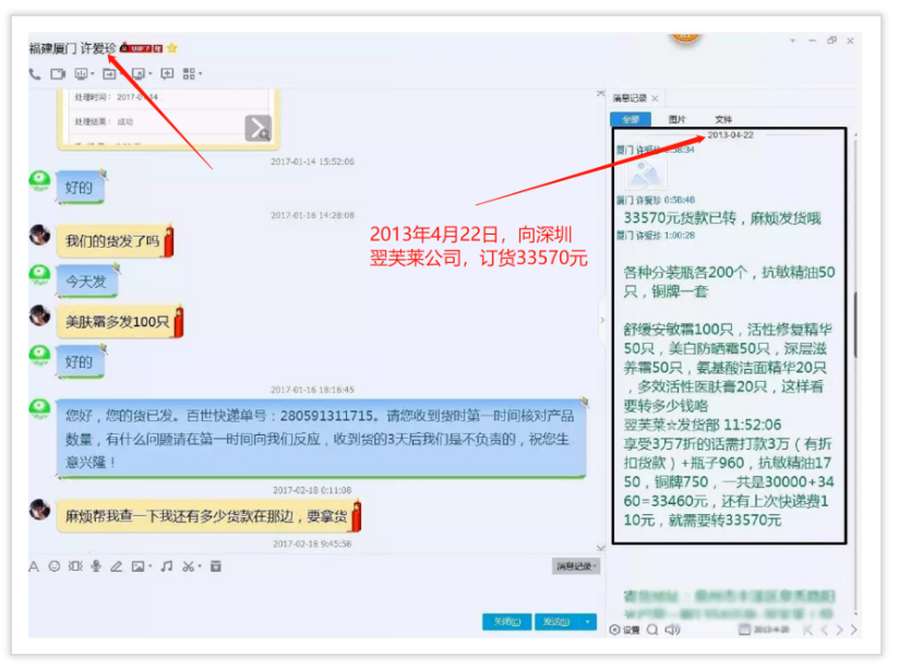 從2011年--2017年間多次向深圳翌芙萊化妝品有限公司進貨,后期自己注冊翌芙萊(廈門)生物科技有限公司,還搶注翌芙萊商標(biāo),打著翌芙萊品牌大肆招搖撞騙,有圖為證。