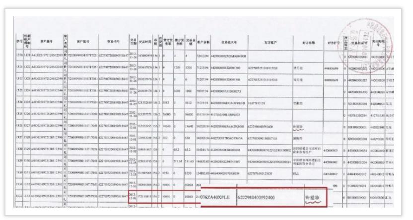許愛珍銀行轉(zhuǎn)賬記錄