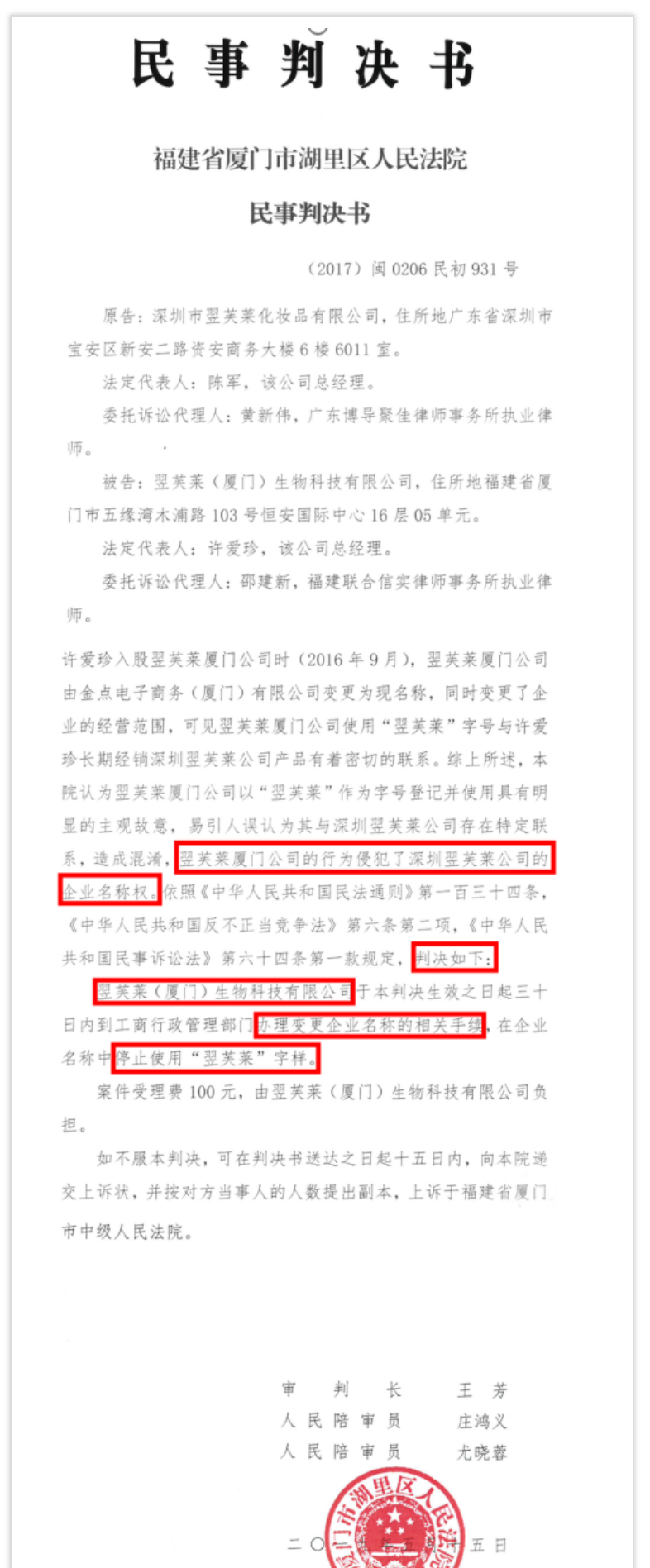 翌芙萊美業(yè)集團從不惹事,也不怕找事,廈門假冒公司膽敢再出來招搖撞騙,深圳翌芙萊美業(yè)集團繼續(xù)拿起法律武器,維護我們的合法權(quán)益。